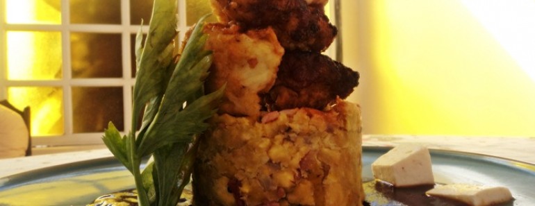 Majado de plátano con chicharrón de pollo