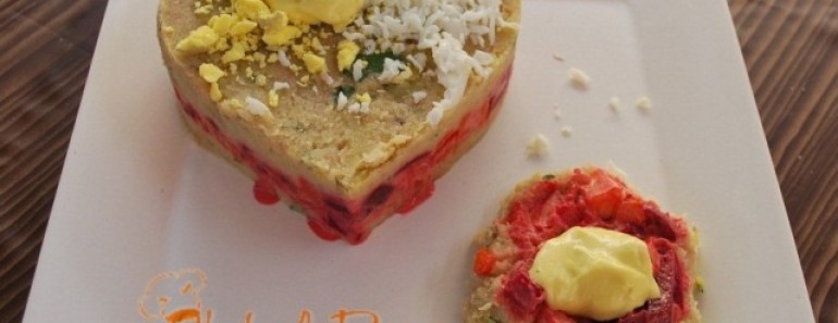 Causa rellena con ensalada de verduras.